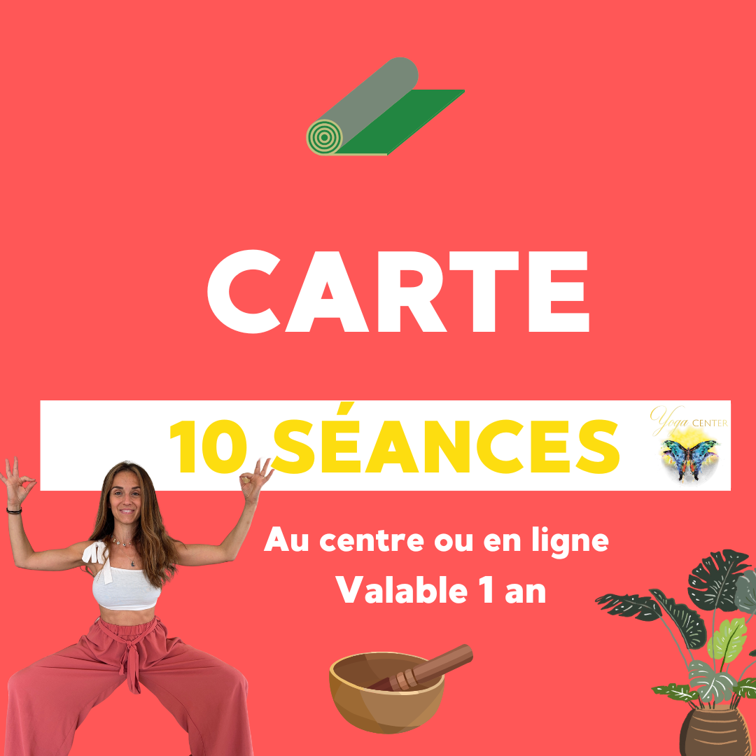 Carte de 10 cours utilisable aux cours collectifs au Studio à chateauneuf ou/& Visioconférence, parmi notre choix de cours sur le planning hebdomadaire, possibilité de changer chaque semaine.